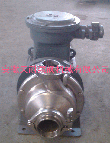 用途:該泵適用于輸送各類酒、汽水、牛奶、醬油、食醋植物油、醫(yī)藥、化工、助劑、染料、紡織、造紙等液體物料。被輸送介質(zhì)溫度不得超過80℃,流量Q=1—80m3/h.揚(yáng)程H=8—40米并能與過濾機(jī)配套使用。廣泛用于制藥、飲料、食品、油脂、乳品、日化、釀造、環(huán)保、水處理等行業(yè)。 特點(diǎn):該泵另部件采用1cr18Ni9Ti優(yōu)質(zhì)不銹鋼材料制造,泵體與電機(jī)聯(lián)成整體,采用機(jī)械密封裝置,并有不銹鋼防護(hù)罩,具有結(jié)構(gòu)簡單、外形美觀、體積輕巧、耐腐蝕、操作方便、無需安裝基礎(chǔ),便于手提。