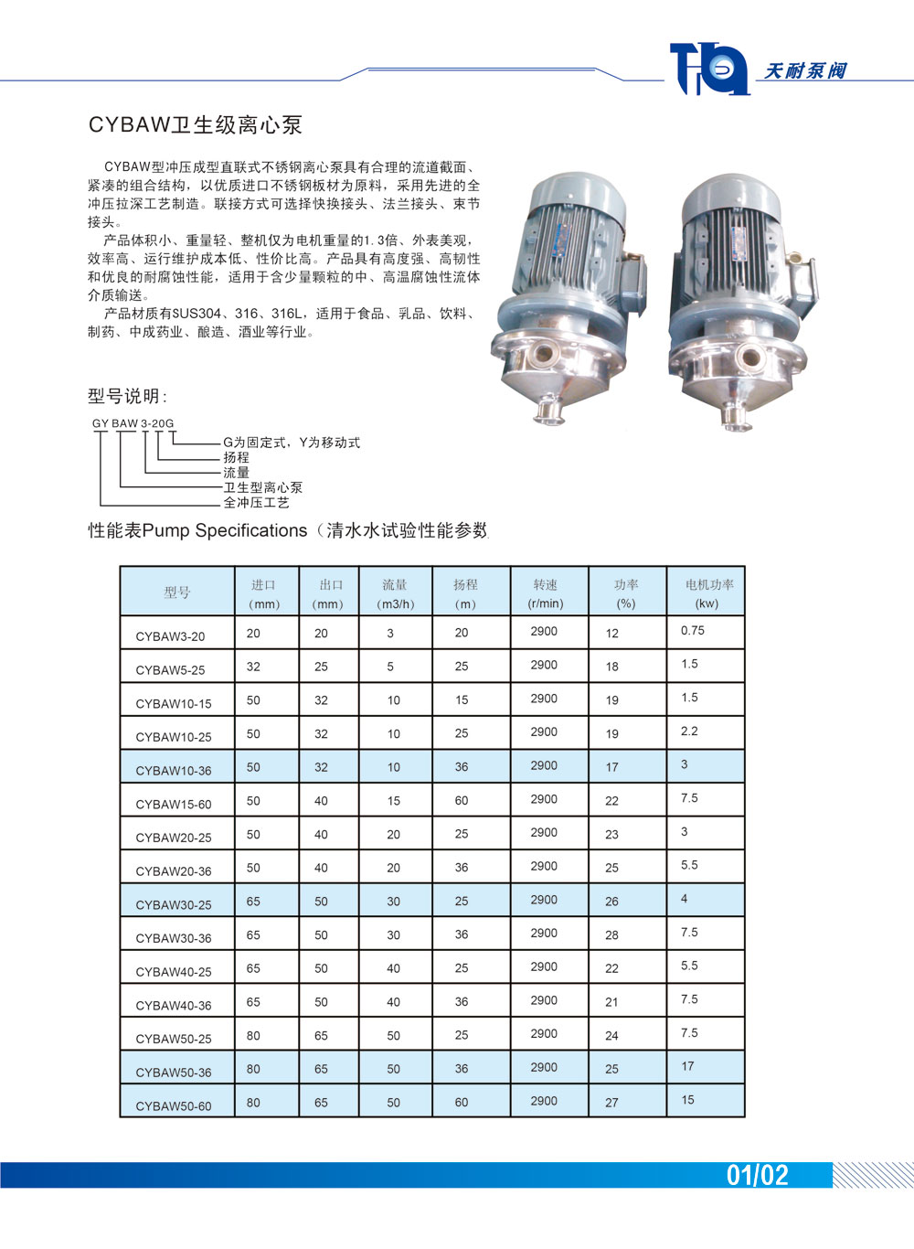 CYBAW衛(wèi)生級(jí)離心泵—天耐泵閥