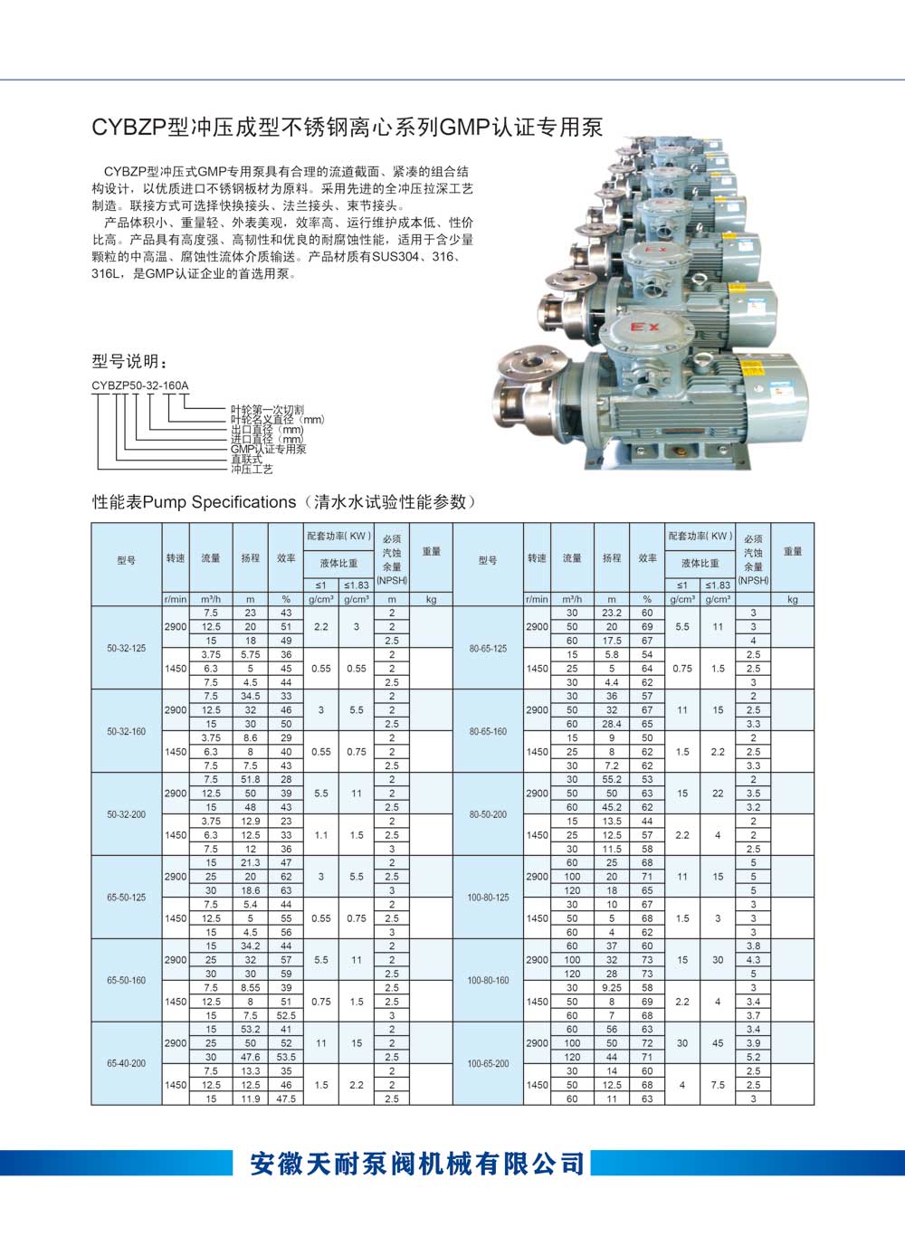 CYBZP型沖壓成型不銹鋼離心系列GMP認(rèn)證專用泵—天耐泵閥